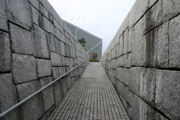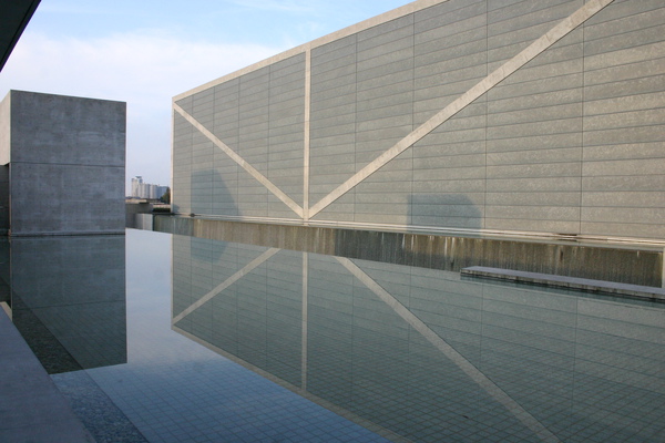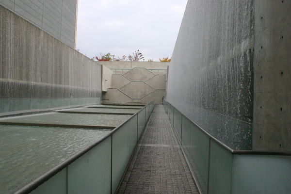 水,是博物館建築設計的核心,安藤對於水的意象處理,今人由衷地感到佩服,由水延伸發展成各式自然景觀,包括水的形狀、聲音、光影,甚至於有著水壩堤防影子的巨石立面,以及充滿流動韻律的曲面設計,讓當代建築與環境、人文歷史做了呼應,而非保存舊時代的公共工程遺跡,也透過建築喚起人們對於以往的諸多記憶。