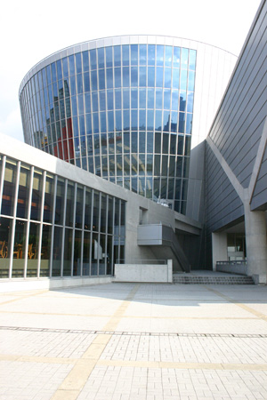 美術館主體為倒圓錐造型,兩側向外延伸,發展成各式複合式空間。