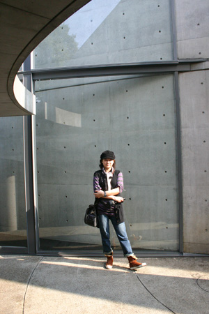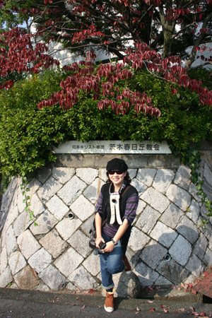 光之教堂,日文的正式名稱為茨木春日丘教會,由兩棟建築物結合在一起,一邊是教會,一邊是供孩童上主日學課。我們一行人抵達時,由於沒事先申請,又非禮拜時間,進不了這間聞名全球的教堂裡。在兩棟建築間逛了逛,隔著玻璃長窗探內部,看兩種機能相異的建築既結合,又分隔,鋼構建築體彎折成不規則的曲面,向天際飛延而伸的雨批,陽光暖暖地投射在教堂外的小天井,翻下一片陰影,留下很美的想像。