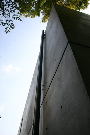 建築細部。外部燈飾隱融於外壁斜傾的凹面。