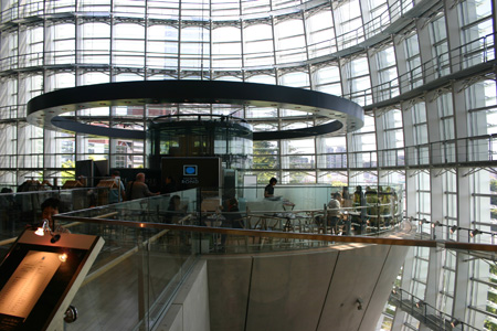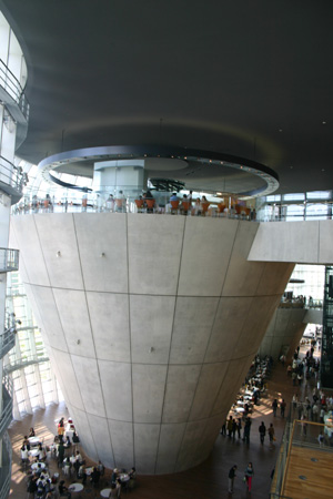 圓錐體中間是餐廳,環繞著玻璃曲面是維修動線。