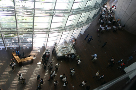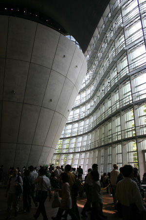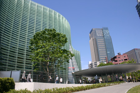 位於東京的新國立新美術館,在2007年1月21日grand open時就是話題焦點,4月底造訪日本時,也將它列入行程。館座落地位於東京都港區六本木的新都市計劃區,光是六本木本身就很有看頭,搭車抵達出站至美術館的一路上,觸目所及是一片繁榮景象,而由黑川紀章(Kisho Kurukawa)所主導設計的建物,波浪般外表融入一棟棟高聳入雲的摩登建築群裡,走在美術館周遭,像是散步於未來城市般。