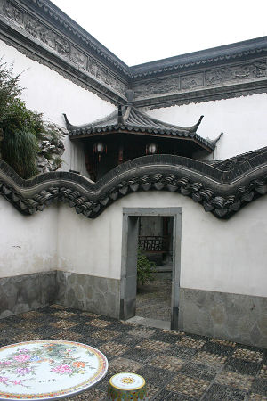 層層相疊的山牆,精緻的石圓桌、圓凳,端出富賈居家生活的奢華一面。