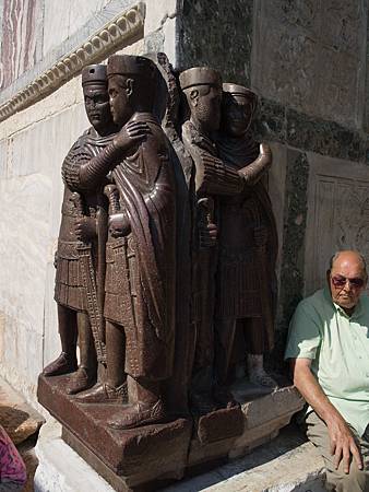 聖馬可長方形教堂,名為"四人執政團"的迷人雕塑群,是4世紀埃及作品,被認為代表戴克里先(Diocleziano)、瓦利里安(Valerio)、馬克西米安(Massimiano)及君士坦丁(Costanzo),輔助統治羅馬帝國的四人。