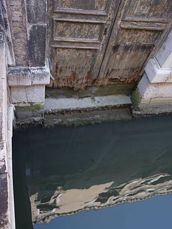 水、大門、倒影,房子底部腐蝕,依稀可見長時期水漲的痕跡。
