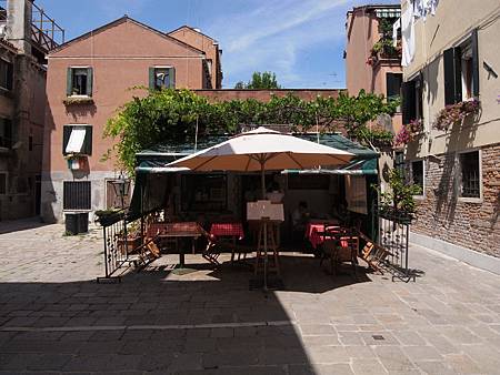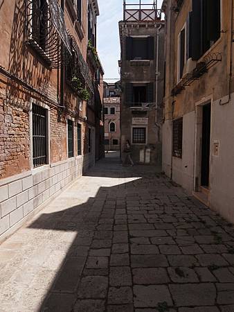停留在威尼斯的3天中,心情是很愉快而悠閒地,綻藍天空下,或走或搭著船,搖搖擺擺地穿梭水道巷弄間,即使是尋找巷弄間的Carlo建築師作品,迷了路也不覺得慌,威尼斯時間是水漾的緩慢……